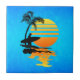 L'art du surf d'un surfeur debout sur le rivage et d'un lever de soleil sur l'eau.
