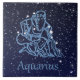 Carrelage représentant le symbole zodiaque d'Aquarius en bleu argenté doux, recouvert d'étoiles de la constellation, contre un arrière - plan étoilé du bleu profond de minuit au noir.