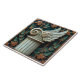 A square relief sculpture featuring a classical column adorned with wings, set against a dark green background with botanical elements. The column, positioned in the lower center, is a pale, weathered white with vertical fluting and decorative molding at the base and capital. Atop the column sits a stylized capital with a prominent volute, from which a pair of stylized wings extend upwards and slightly to the right.