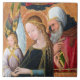 This detail from an early 15th-century panel painting by an anonymous French artist focuses on the faces of three figures: an angel, the Blessed Virgin Mary (BVM), and St. Joseph. The angel, with multi-colored, upright wings and dressed in white, smiles as he gently leads a gravid—that is, very pregnant—Virgin Mary to the place where she will deliver her babe, fulfilling the first part of God’s plan for the salvation of mankind. Mary, dressed in a dark blue robe and matching mantle, her head humbly bowed, meekly follows the angel’s lead. She is serenely calm and introspective. And, finally, a fretful, elderly St. Joseph watches from behind an elaborately woven, waist-high tapestry hung as a privacy curtain (not visible here) as his young wife is led away to give birth in a different account of the Nativity from the apocryphal Gospel of James. + Image Credit: Detail of The Expectant Madonna with Saint Joseph, by an anonymous 15th-century French painter, c. 1425/1450, tempera on a European walnut panel. Dimensions (image): 27 3/4 × 13 3/4 in. (70.5 × 35 cm.); (with integral frame [not pictured here]): 32 11/16 × 19 × 2 3/4 in. (83 × 48.3 × 7 cm.). The Samuel H. Kress Collection, The National Gallery of Art, Washington DC, Accession Number: 1952.5.32. This image is in the public domain.