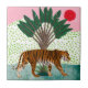 Tigre à Sunrise I par Melissa Wang. Un tigre passe devant un arbre tropical tandis que le soleil se déplace à travers le ciel. | 164402D
