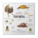 Une carte postale vintage de thanksgiving à partir de 1910, avec tous les fixens, y compris le potage au poulet, dinde et sauce à la canneberge de rôti, pommes de terre, pois, carottes, raisins secs, citrouilles, écrous, eau de puits, cidre et café. Le repas commence par du pain grillé, "mai le regard de dinde plus légèrement à l'extrémité de ce dîner."