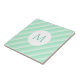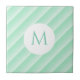 Trendy Mint Green Stripes Monogramme Modèle moderne Carrelage décoratif en céramique.