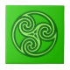 Carrelage dans un ancien motif celtique triskele / triskelion, ou triple spirale Archimède, en chaux clair et vert émeraude foncé sur un arrière - plan vert citron moyen