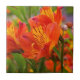 Des fleurs d'Alstroemeria (lys péruvien), d'orange vif et de belle couleur, créent un décor frappant pour ce carrelage en céramique décoratif