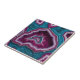 Cette tuile attrayante présente un motif de géoode abstrait vibrant dans les tons violet, turquoise et blanc. Les détails complexes et les textures cristallines créent un design unique et moderne, parfait pour ajouter une touche de beauté naturelle et de couleur à tout espace. Idéal pour une utilisation comme carrelage d'accent décoratif, dessous de verre ou partie d'une mosaïque plus grande.