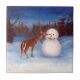 D'une peinture acrylique originale de Brenda Thour d'un cerf commun curieux à ce sujet la carotte sentante délicieuse de snowmans flairent. Copyright par Brenda Thour 2003.