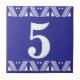 Tuile de nombre d'art déco - blanc sur le bleu avec la frontière d'une imprimante