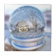 À l'intérieur de la neige un globe est un paysage d'hiver avec un cottage éclipsé par l'érable et les cerisiers nus. La neige scintille sur la pelouse, buissons de houx couverts de flanc rouge lumineux de baies la porte, et les flocons de neige dégringolent par l'air congelé. Près du globe un petit chickadee regarde curieusement dedans la scène miniature.
