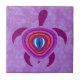 Une tortue de mer violette à l'oeil bleu vif dans le dos. Les carreaux sont disponibles en deux tailles : 4,25 x 4,25 pouces et un grand 6 x 6 pouces.