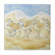 Cinq jolis pluviers sur une plage pour une tuile de salle de bains ou de cuisine.