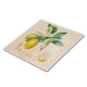 le carreau de céramique brillant vigoureux de 6 x 6 pouces comporte le fruit et la fleur de citron avec le texte français des textes botaniques français vintages. Accent parfait pour une cuisine française de pays ou la cuisine de ferme.