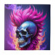 Cette oeuvre d'art frappante présente un crâne punk flamboyant aux couleurs vives, ses yeux creux vivants avec attitude et énergie. Un mohawk sauvage et électrisant éclate du haut du crâne, dans des teintes audacieuses qui reflètent l'esprit rebelle de la culture punk.