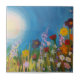 Fleurs de maïs bleues, pavots rouges et marguerites blanches dans un champ en été. Ciel bleu et soleil brillant.
