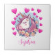 Carreau Unicorne mignonne, Coeurs et Fleurs roses, Nom per