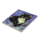 Carrelage avec un chaton tuxedo dans le style de Vincent van Gogh! Cette jolie petite pose avec des fleurs violettes. Un superbe cadeau pour les collectionneurs d'art amoureux des chats et néerlandais !