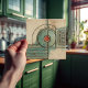 Ce "Ventilateur Art Déco et Carrelage Cercle en Céramique" saisit l'essence de l'époque Art Déco avec ses motifs de ventilateur et sa pièce centrale circulaire audacieuse. Le design associe une symphonie de teintes turquoises, bronzées et rouilles, harmonisées avec une précision géométrique sur une toile crémeuse. Cette impression de carreaux, bien que lisse et plate, reflète la profondeur et la texture de l'original, ce qui en fait un ajout frappant à toute pièce à la recherche d'une touche de vintage. Il est parfait pour créer un point focal dans votre espace de vie, ajouter un arrière-plan artistique dans la cuisine, ou comme une caractéristique élégante dans votre salle de bain.