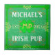Créez votre propre pub fait sur commande et irlandais, dessous de verre à la maison de tuile de barre utilisant ce modèle. Les dessous de verre sont faits pour ressembler au vieux bois vert avec l'abondance des flourishes vintages aux nuances de vert, de blanc, l'orange et l'or. Il y a également cinq shamrocks/trèfles dans la conception. Ces dessous de verre peuvent être personnalisés avec votre propre nom, initiales/monogramme et l'année votre brasserie, barre ou caverne Irlande-orientée d'homme ont été établies. Complétez juste le modèle facile de do-it-yourself ou cliquez sur la "personnaliser il" si votre texte fonctionne longtemps et vous doivent remettre à la côte, réarranger ou changer des couleurs et des polices des textes. Ce sont parfaits pour le jour de Patrick de saint ou tout au long de l'année.