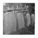 Ces vieilles, en pierre pierres tombales marquent des tombes dans le cimetière de colline de laurier. Les cimetières historiques peuvent avoir le goth, mystérieux, ou les qualités éffrayantes à eux. Cette photo noire et blanche jette une lumière rigide, morne, déplaisante sur la nécropole. Certains trouvent des cimetières effrayants, effrayant, ou macabre. D'autres trouvent des cimetières paisibles et beaux.