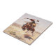 Le cowboy occidental vintage montant un cheval s'opposant a imprimé sur le carreau de céramique