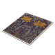 Deux carreaux carrés aux motifs floraux gaufrés sur un arrière - plan violet foncé. Chaque tuile présente un grand tournesol stylisé avec de nombreux pétales et un centre détaillé, ressemblant à un tournesol. Les fleurs sont positionnées au sommet de chaque carreau, avec des tiges gris argenté et du feuillage s'étendant vers le bas.