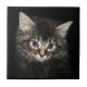 Carreau de céramique de chaton de photo tigrée grise aux cheveux longs de visage