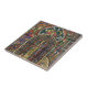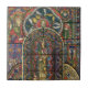 Illustration ancienne d'élément architectural représentant un magnifique vitrail à thème religieux provenant d'une église. La figure centrale est une femme vêtue de robes et portant une couronne, elle est entourée d'autres personnes dont Saint Silvestre.