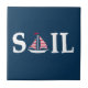 Sail text illustration with sailing boat decoration on dark blue background. C'est possible to change the background color and to add different one to the design with your choice.