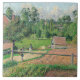 Vue depuis la fenêtre de l'artiste, Eragny. Camille Pissarro. Un beau paysage printanier aux couleurs chaudes. Un champ labouré avec un homme debout à côté. La route va au loin. Il y a une petite maison sur le terrain. Il y a des nuages clairs dans le ciel bleu. Reproduction d'oeuvres d'art célèbres dans le domaine public.
