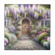 This enchanting scene captures the essence of a storybook cottage garden, bursting with lush blooms and cascading wisteria in soft purples, pinks, and whites. A charming arched wooden door welcomes you through a stone path framed by flowering shrubs, manicured greenery, and dreamy light filtering through the foliage. The overall mood is peaceful, romantic, and full of secret garden nostalgia—perfectly aligned with cottagecore and fairytale aesthetics. The composition draws you inward, evoking a sense of wonder and serenity beneath the floral canopy. AI generated artwork.