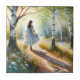 Carreau Whimsical Girl Dancing Through Birch Forest