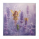 Among blooming lavender fields, three magical beings gather — a golden-winged fairy, a playful sprite, and a leafy companion.