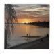 Tampa rentré, la Floride. Le coucher de soleil est particulièrement vibrant en cette photographie. Le cartel orange et jaune bien avec les nuages. Il y a une silhouette des deux personnes marchant le long du rivage. Cette photo les montre vraiment beauté des tropiques.