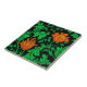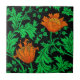 Carreaux en céramique dans un vintage William Morris motif damassé floral de fleurs et de feuilles d'anémones, numériquement rehaussés et colorés - feuilles vert émeraude, et des fleurs dans les tons de mandarine profonde orange et or sur un arrière - plan noir