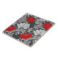 Carrelage en céramique dans un vintage William Morris, Art Nouveau, imprimé floral de chrysanthèmes stylisés, numériquement rehaussé et coloré, dans les tons gris argent/gris et blanc, accentué de rouge profond, sur un arrière - plan gris graphite foncé