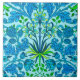 Carrelage en céramique dans un vintage William Morris motif de jacinthes, tulipes et feuilles, dans les nuances de céramique profonde et bleu cobalt, accentué de marine, jaune, et vert citron, sur un pastel bleu ciel arrière - plan
