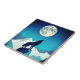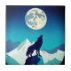Carreaux en céramique dans une silhouette noire d'un loup, hurlant à une grande pleine lune, debout sur un sommet de montagne avec, glace couvert montagnes dans l'arrière - plan