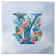 Monogramme Y en bleu avec belle conception florale sur ciel bleu nuageux avec nuages blancs moelleux. Généré par l'IA.
