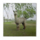 Un alpaga gris rose décore cette charmante tuile en céramique