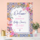 Notre motif en céramique bleue d'inspiration italienne-méditerranéenne, jumelé à des fleurs sauvages d'aquarelle pastel peints à la main, rose gaie, crée un baby shower frais et moderne bienvenue transparent signe qui ne manquera pas d'impressionner! Doté d'une arche moderne et d'un élégant script de brosse. Impressionnez vos invités avec ce design tendance et unique qui fera parler tout le monde.