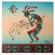 Éclairez votre maison avec ce Carrelage Kokopelli Sud-Ouest unique "One of a Kind" ! Il présente un Kokopelli sud-ouest jouant la Flûte avec des notes de musique, dansant sous le soleil sur un Arrière - plan turquoise et orange...et une frontière inférieure en Turquoise, Orange et Noir! C'est une création artistique originale de l'artiste Kerry Miller.