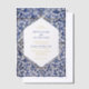 Ce design présente des motifs de tuiles portugaises rustiques. Le texte mariage est élégamment encadré d'une forme géométrique blanche et dorée. Design unique de faire-part de mariage floral bleu et blanc Azulejo avec des éléments modernes. Des articles de papeterie mariage correspondants et d'autres formats d'invitation de mariage sont également disponibles.