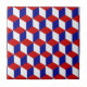 Trois blocs dimensionnels sont empilés, montrant 3 côtés (rouge, blanc, bleu). Le regard sur la conception assez longtemps et une illusion d'optique provoque le déplacement de l'avant/du dessus et des côtés.