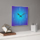 Carrée Conception illuminée de bleu chic > Horloge mural
