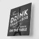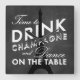 "Il est temps de boire du champagne et de danser sur la table", écrit dans un scénario chic sur la Tour Eiffel en arrière - plan du soir, décore cette horloge murale.
