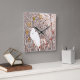 Aiguille debout au bord de la haute herbe. La photographie originale est manipulée en une seule couleur dans les tons sépia. Les chiffres semblent tridimensionnels et sont dans des tons allant de l'orange au jaune au fur et à mesure qu'ils vont de 1 à 12.