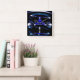 Carrée horloge au néon bleue