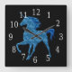 Carrée Horloge bleue de licorne du feu