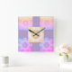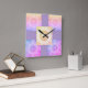 Accessoire de chambre enfant. Décor de salle d'art mural carré horloge tonalités arc-en-ciel vives.