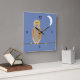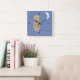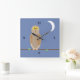 Chouette assise sur la branche avec un croissant de lune sur son épaule. Numéros noirs pour les positions 12, 3, 6 et 9. Bleu gris foncé pour arrière - plan. Le hibou est en brun avec les yeux jaunes.